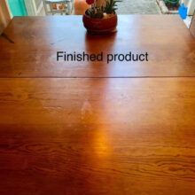 I bought this after seeing it featured in a Buzzfeed article and reading the reviews. My great-Grandfather built the table I use in my kitchen and it’s gotten pretty roughed up over the years. The product was easy to apply, then I left it on for 20 minutes before wiping away any residue. It does have a strong scent, so I kept the windows open for a bit. It definitely improves the appearance. It did not completely erase the water rings, but it dramatically minimized them. It’s not a miracle worker- the table still ultimately needs to be sanded down and refinished, but short-term, this is a huge improvement. The finish isn’t sticky or oily at all and the smell dissipates quickly. I would recommend it definitely over other polishes I’ve tried.